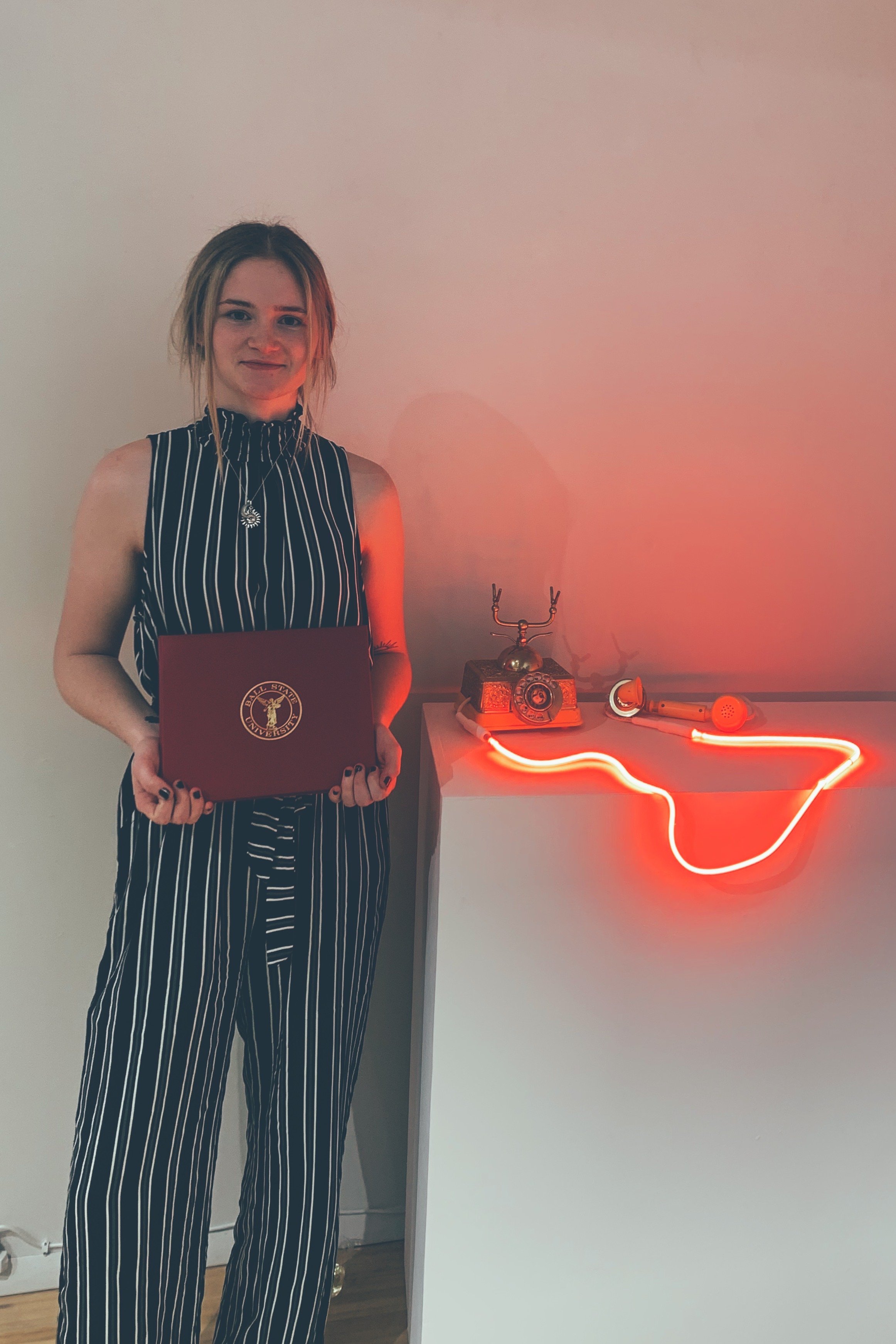 While at Ball State, Webster developed a body of work centered on the evolving and deteriorating nature of her vision. She is drawn to optical illusions and altered visual states, using them to challenge how viewers see and interpret their surroundings. Her BFA thesis exhibition, Wandering Eye, examined her personal relationship with sight and the ways in which she perceives the world.