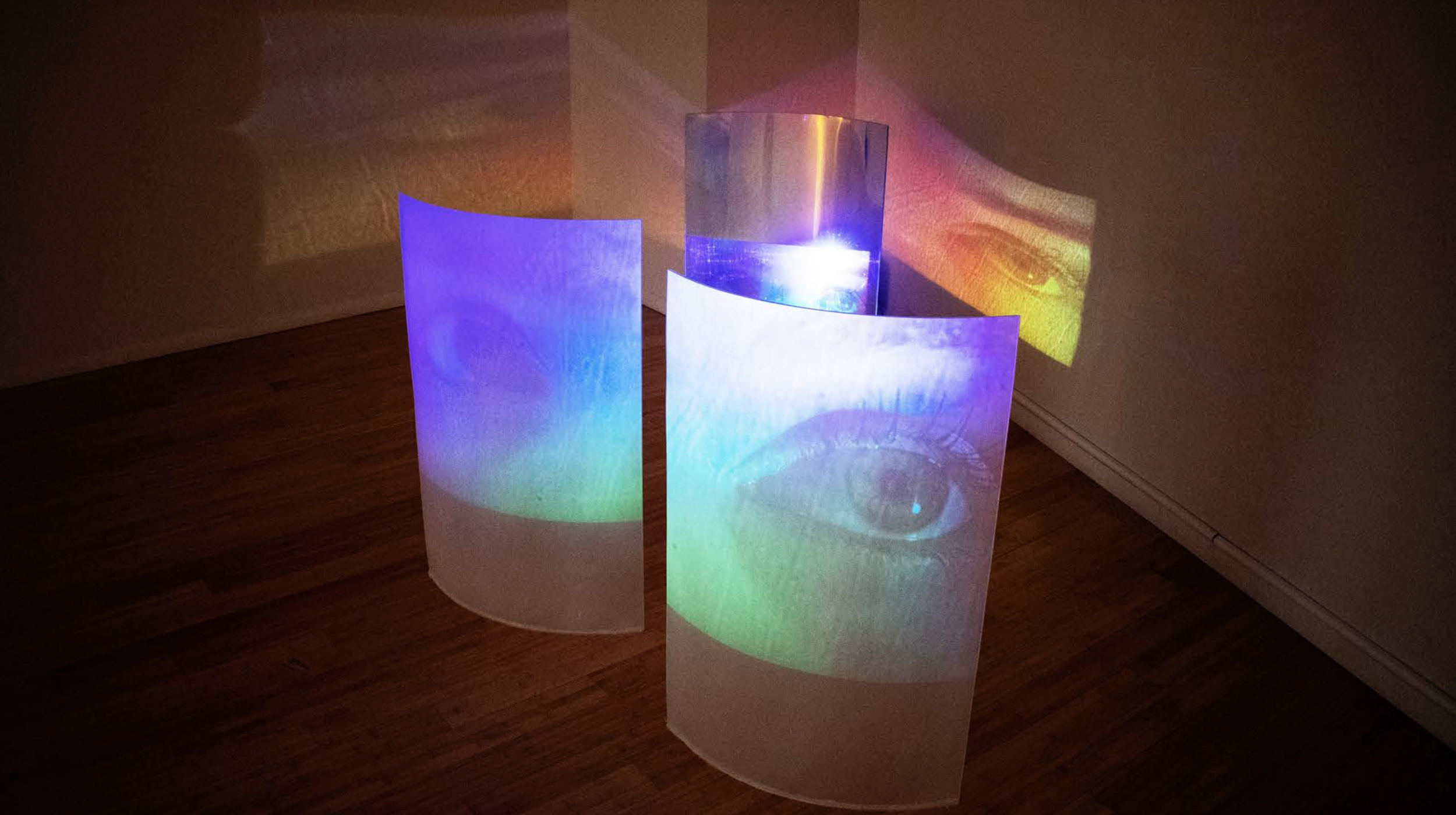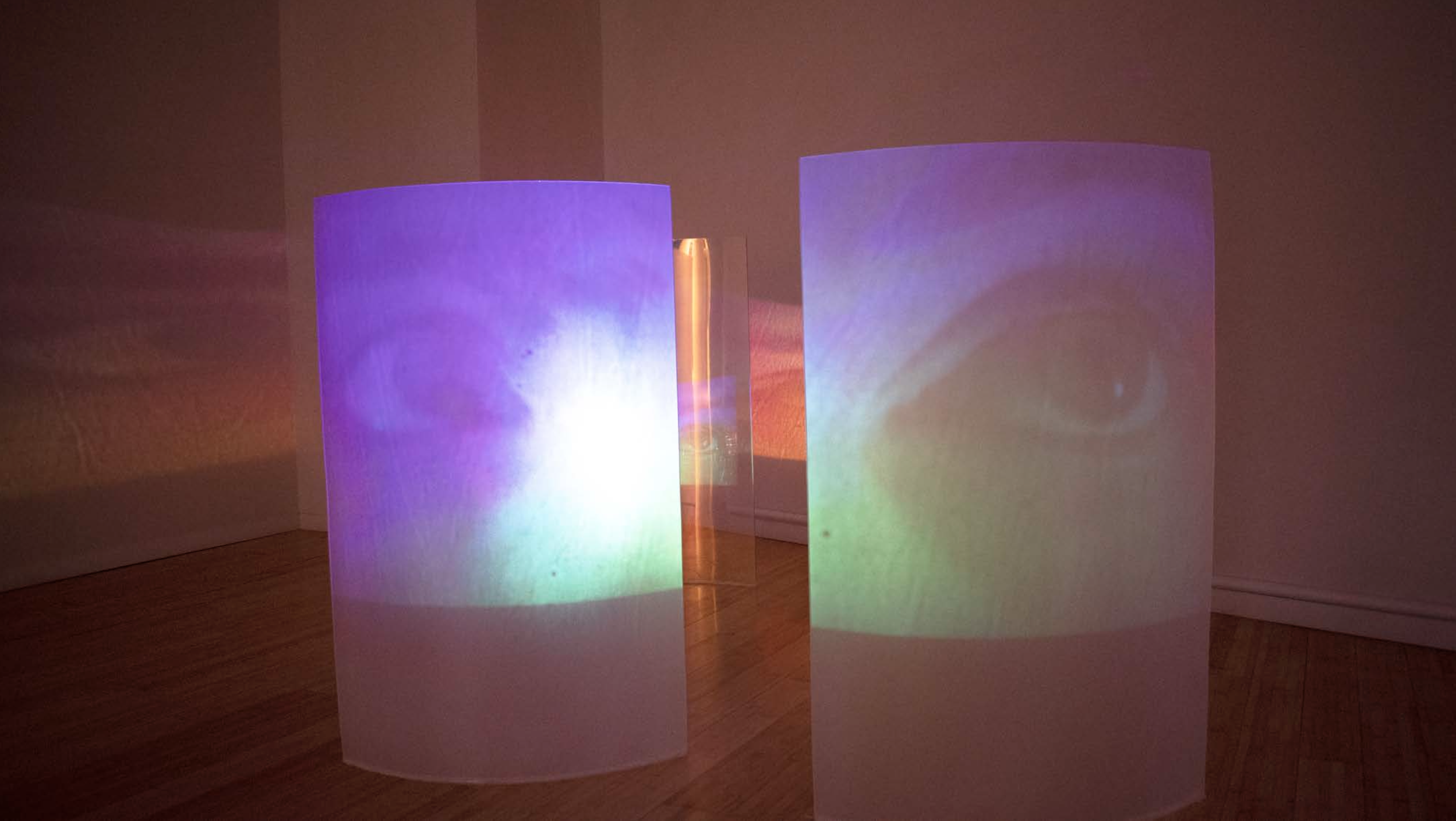 My senior exhibition show will explore my own personal vision, and how I can influence the viewer to have a new visual experience similar to mine. My show uses the medium of glass, that I have manipulated to degrade or deteriorate video projections of my own eye. I have often taken my inspiration from these personal experiences and living with this affliction. I hope that my senior show gives inspiration to my viewers and peers to think about how vision and perception influence everyday life, and how people perceive the world differently.