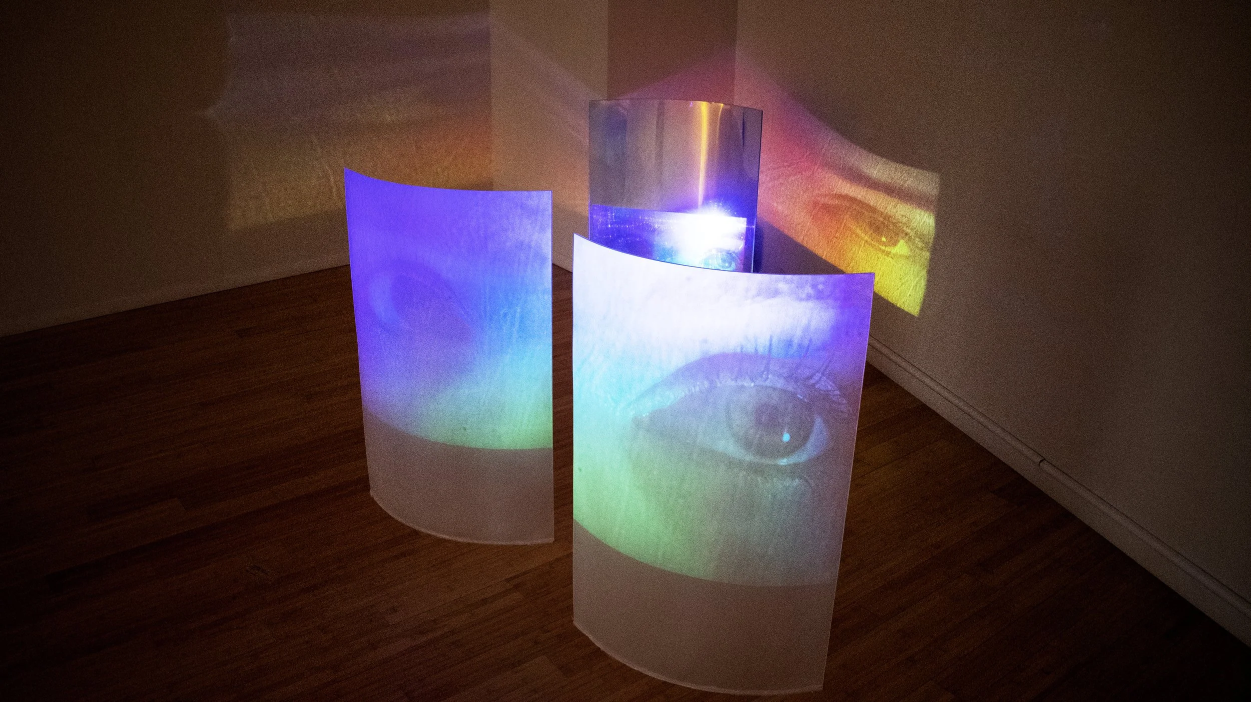 My senior exhibition show will explore my own personal vision, and how I can influence the viewer to have a new visual experience similar to mine. My show uses the medium of glass, that I have manipulated to degrade or deteriorate video projections of my own eye. I have often taken my inspiration from these personal experiences and living with this affliction. I hope that my senior show gives inspiration to my viewers and peers to think about how vision and perception influence everyday life, and how people perceive the world differently.